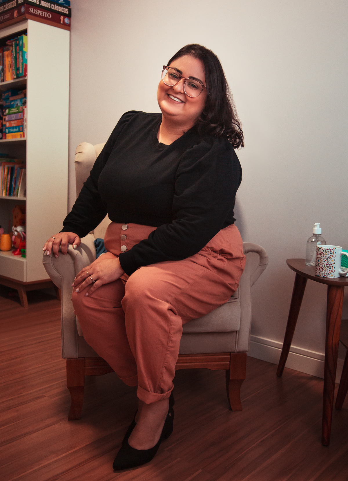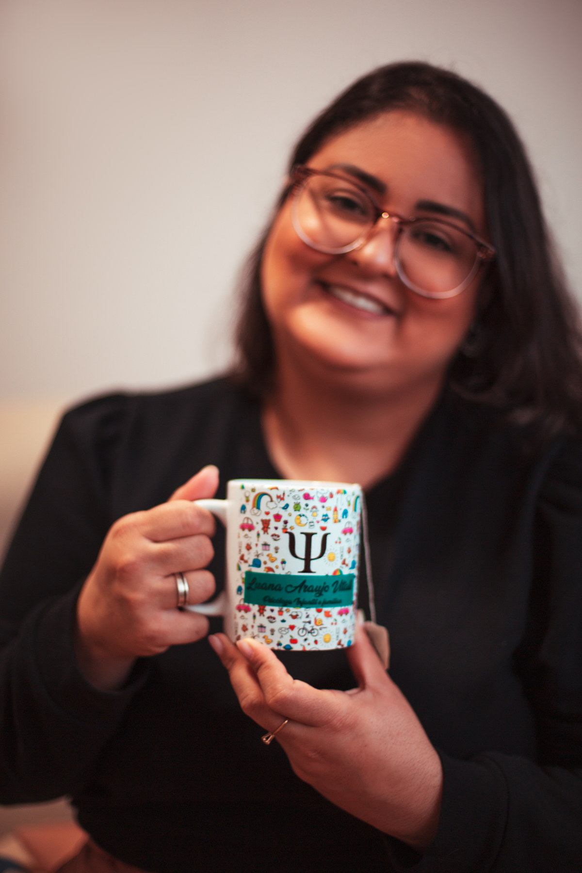 A Luana é psicóloga e atende adultos e crianças, o consultório tem uma decoração linda e também muitos brinquedos e detalhes lúdicos. Tivemos duas estéticas diferentes: uma mais séria, e outra mais descontraída, onde a Luana botou a mão na tinta e tudo, também se fizeram presentes os brinquedos que ela mais usa com as crianças durantes os atendimentos - amei demais as miniaturas do filme "Divertidamente", e amei também podem fotografar a Luana de uma forma tão fluida e descontraída.