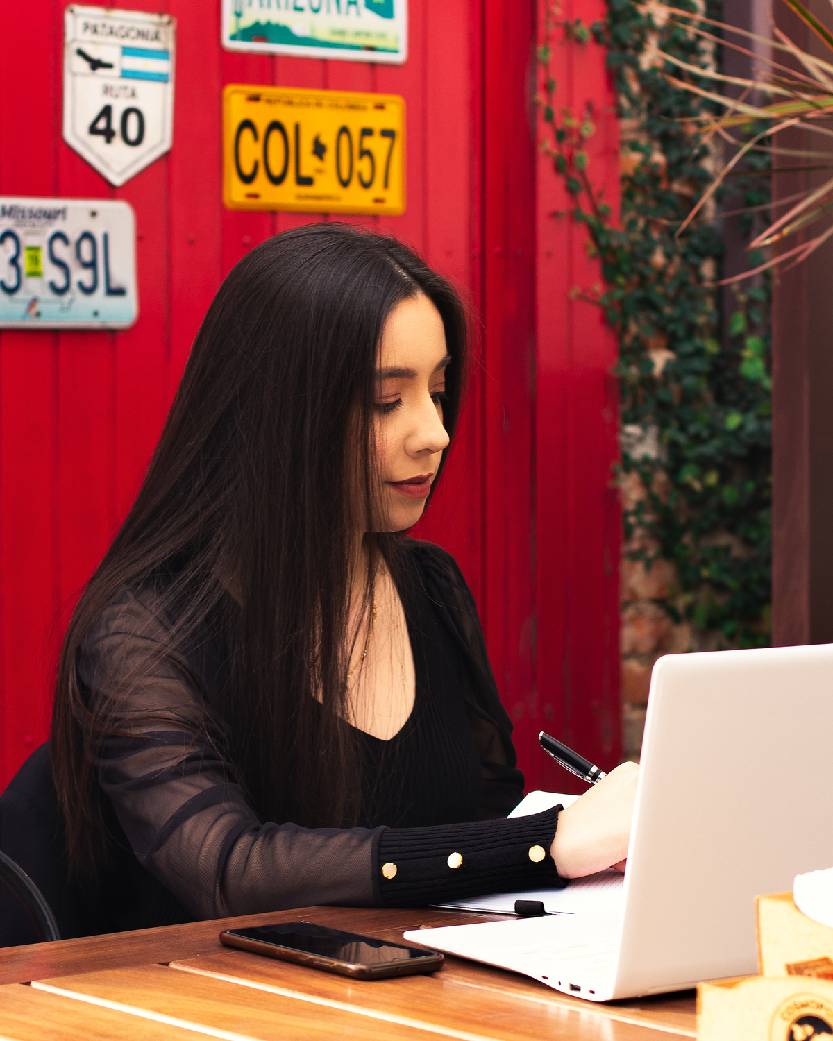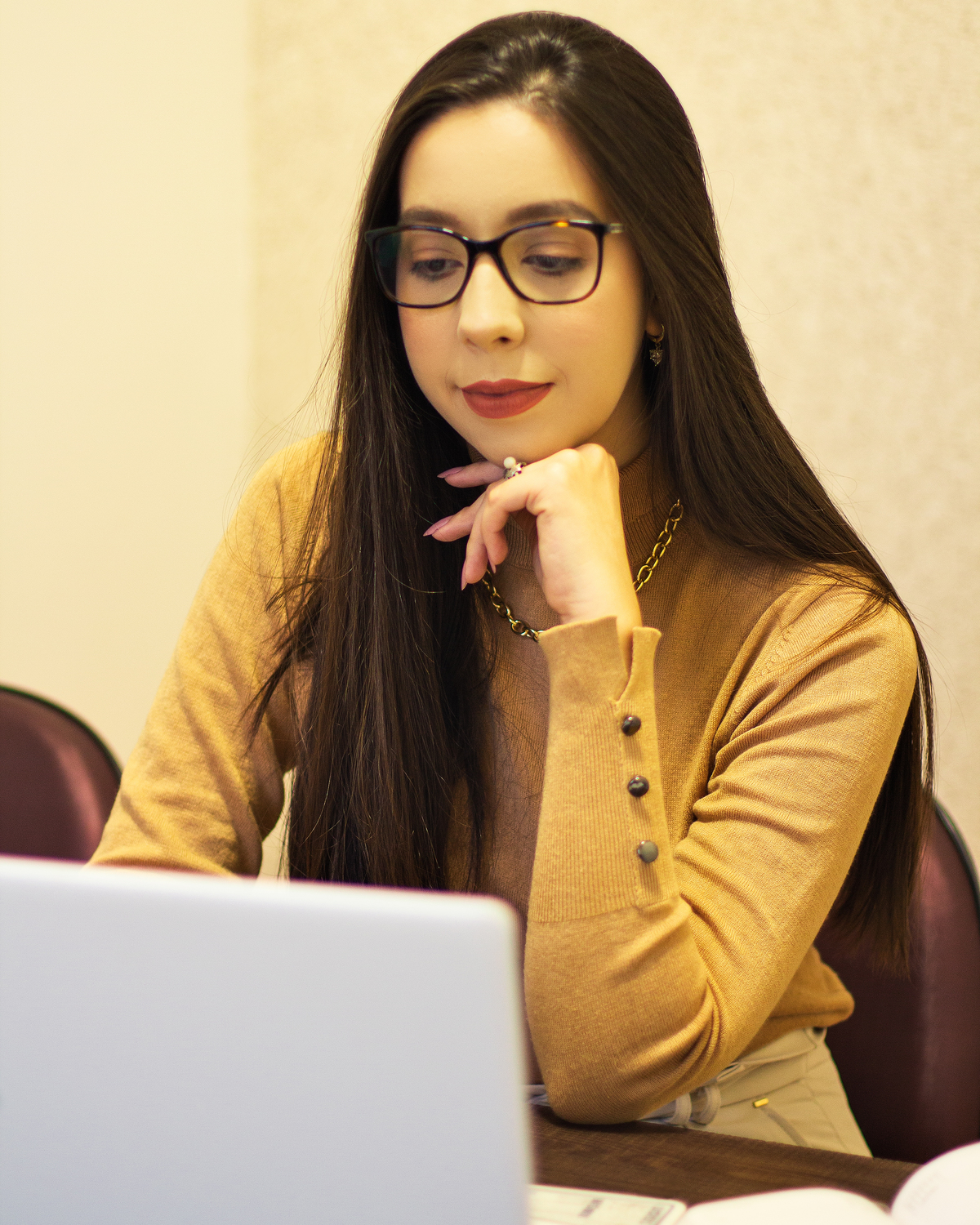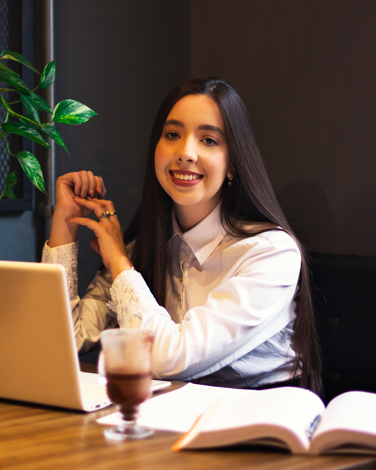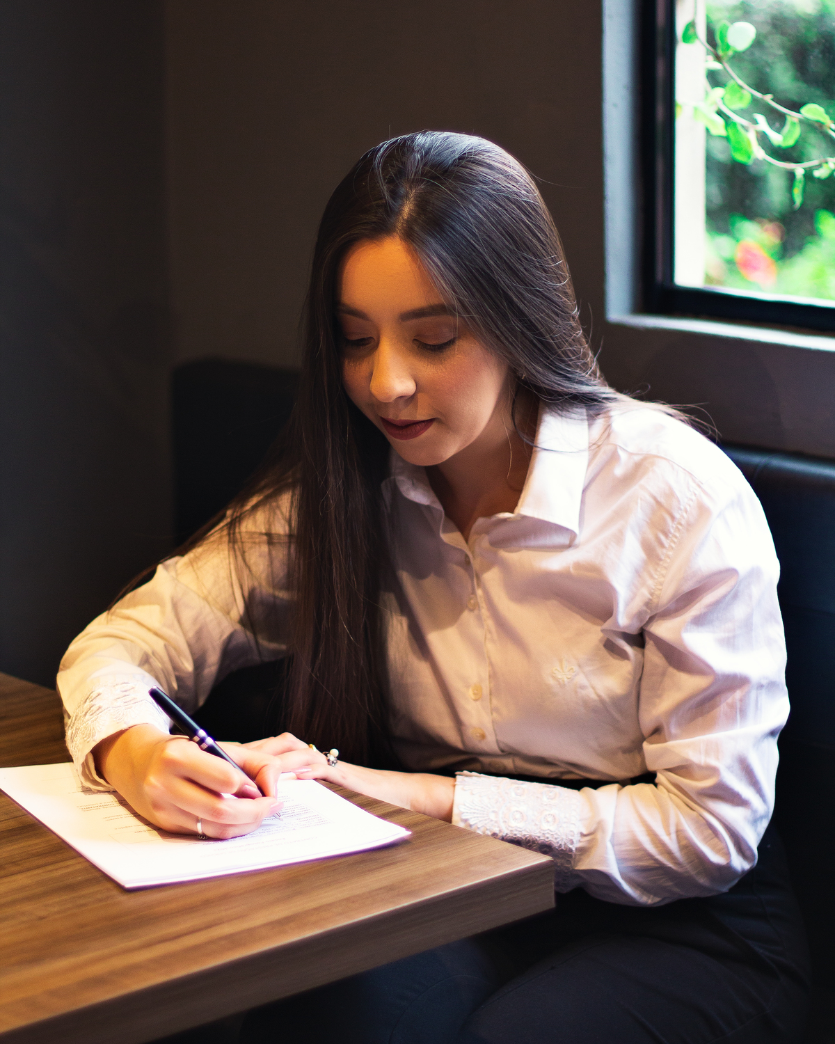 A Mariana é advogada e queria dois estilos de fotos: mais sérias e ambientadas em escritório e também mais descontraídas e não engessadas na imagem séria que geralmente a profissão passa. Fizemos o ensaio em duas locações e ousamos nos looks com cores - que já faziam parte do guarda-roupa da Mari.